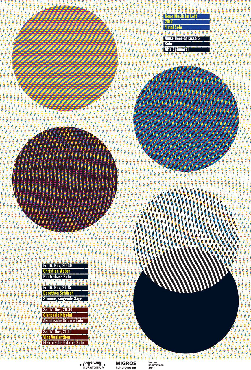 | 04.12.07 | 20.15 | Werkstattkonzert Sabine Vogel flutes, electronics solo Christian Weber contrabass solo Michael Thieke clarinet solo WIM, Zürich |