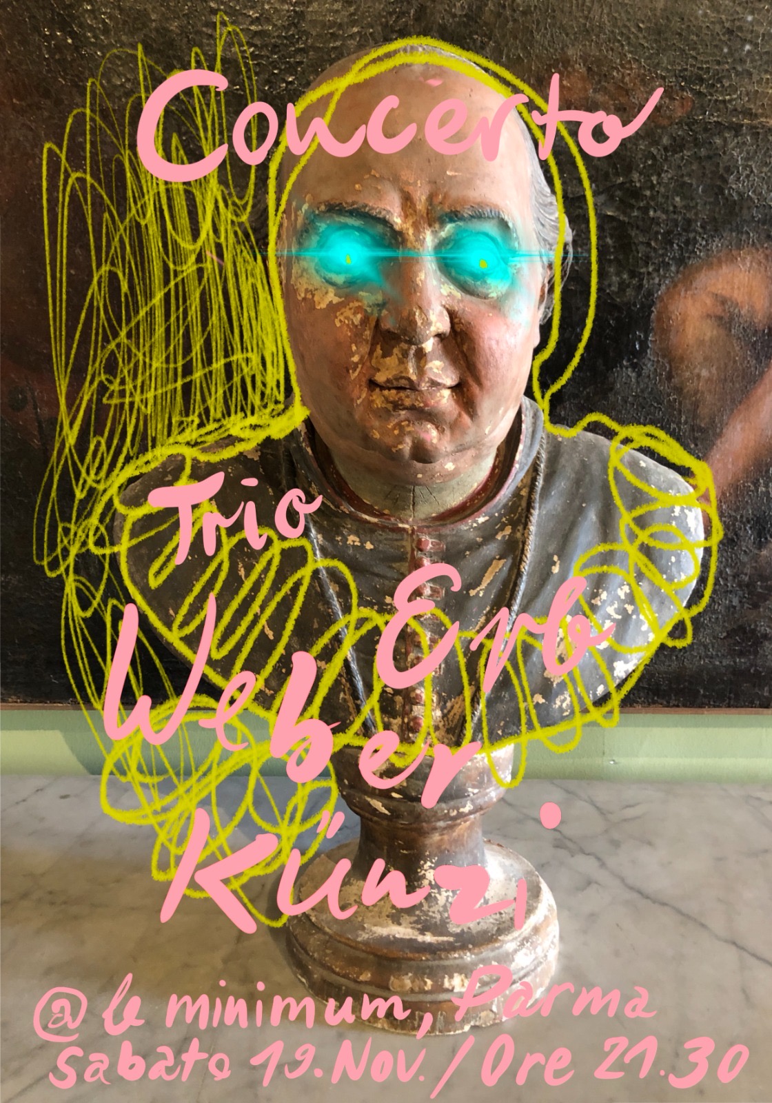 Erb/Weber/Künzi Christoph Erb reeds Christian Weber bass Emanuel Künzi drums 16.11. Biel - Atomic Café 18.11. Luzern - Atelier LOL Flyer 19.11. Parma - le minimum Flyer 20.11. Locarno - Carovana091 |