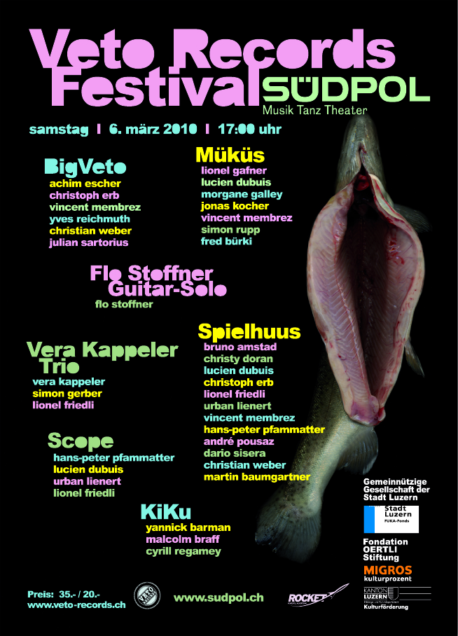 | 01.04.08 | 19.30 | Fractal Yves Reichmuth guitar Lucien Dubuis bassclarinet Christian Weber bass Lionel Friedli drums Musiktage, Stans |