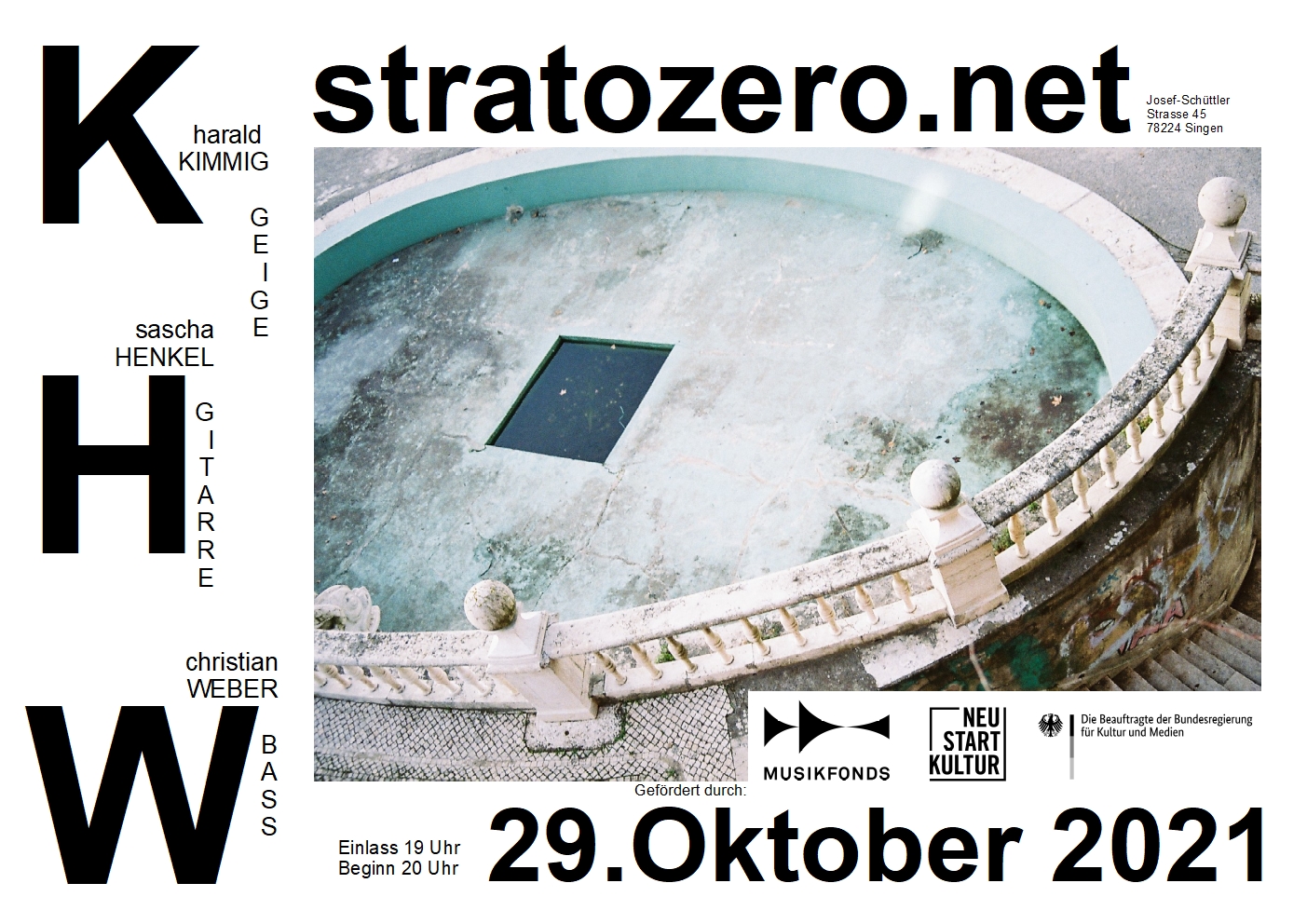 | 14.11.24 | 20.00 | Kimmig/Henkel/Weber Harald Kimmig violin Sascha Henkel guitar Christian Weber bass JazzPort - Theater Atrium Fallenbrunnen, Friedrichshafen (D) |